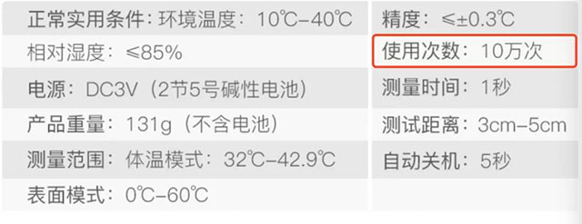 ①如果你有仔細(xì)看過倍爾康非接觸式體溫計(jì)的說明書,就會發(fā)現(xiàn)“使用次數(shù)”的說明,這個(gè)“使用次數(shù)”也就是按鍵的使用次數(shù)。以倍爾康JXB-178為例,它的按鍵使用次數(shù)是10萬次,超過10萬次后也會影響準(zhǔn)確度。